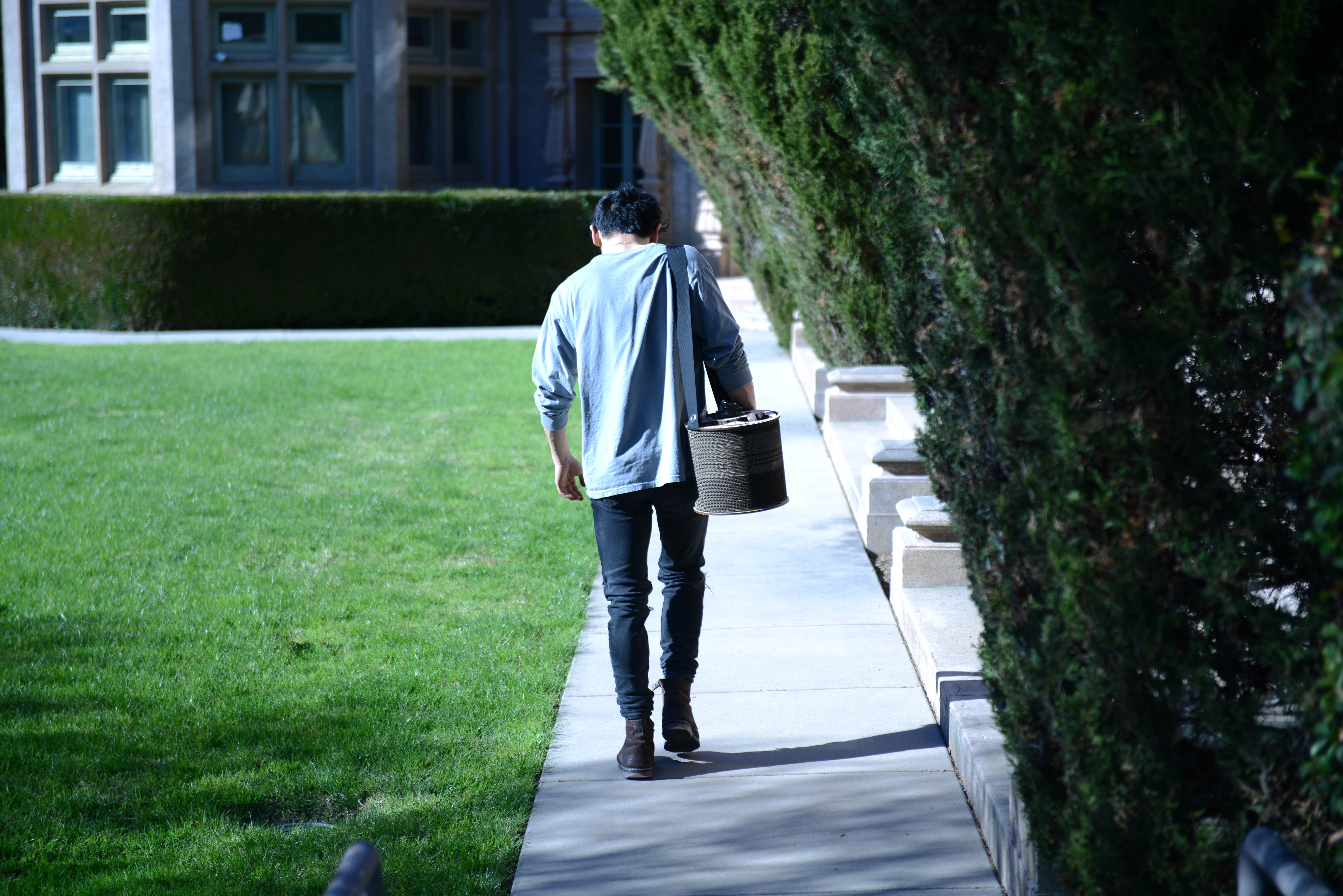 Sound is played to a speaker which is housed in the long canister.